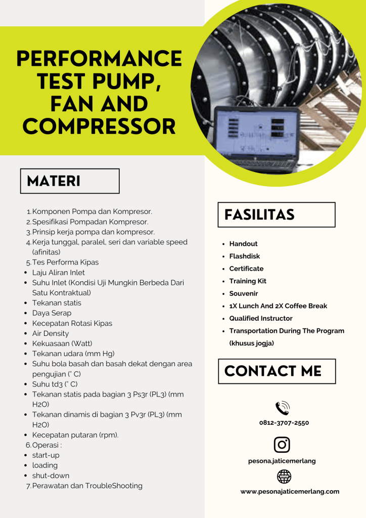 LATAR BELAKANG Pompa, fan dan Kompresor dalam proses operasi industri memiliki peranan yang sangat penting. Pompa,fan dan kompresor memiliki karakteristik khusus untuk melayani pekerjaan-pekerjaan tertentu. Untuk menanganinya, dibutuhkan kompetensi khusus untuk dapat memilih dan memutuskan pompa, fan dan kompresor mana yang benar-benar sesuai dengan pekerjaan yang dihadapi sehingga hasilnya bisa optimal. Kesalahan memilih type dan …