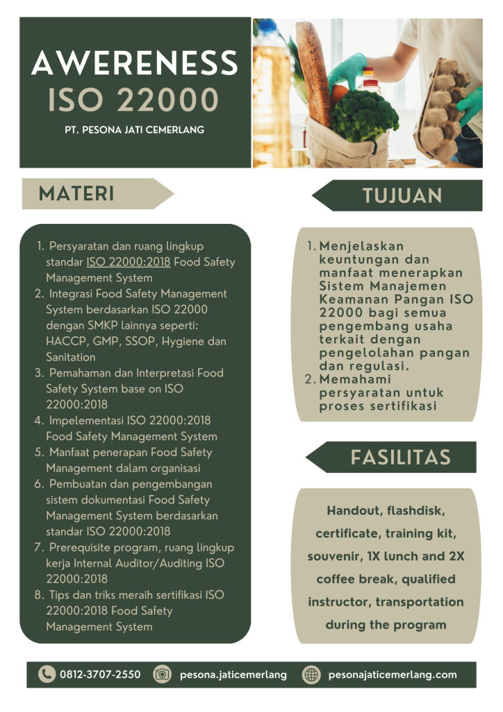 DESKRIPSI Perdagangan internasional mewajibkan perusahaan agroindustri memperhatikan mutu produk, keamanan pangan dan ketertelusuran (traceability), baik dalam proses produksi maupun keseluruhan rantai produksi. Guna memenuhi persyaratan peraturan perdagangan international serta memperkuat posisi perusahaan di persaingan global, maka perusahaan pangan perlu menerapkan sistem jaminan mutu. Sistem jaminan mutu yang berkembang dan umum digunakan dalam industri pangan adalah …