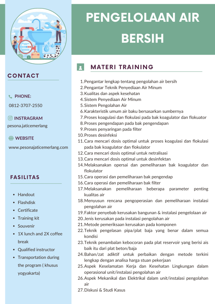 DESKRIPSI Pengelolaan air bersih untuk kebutuhan industri merupakan tantangan tersendiri dan dunia industri dituntut lebih untuk dapat mengoptimalkan pengolahan air bersih untuk memenuhi kebutuhannya. Berkembangnya jumlah penduduk, pertumbuhan ekonomi dan industri, pencemaran serta perubahan iklim global menyebabkan ketidakseimbangan ketersediaan air bersih di Indonesia. Saat ini hanya 20 persen air bersih yang layak minum dan baru …