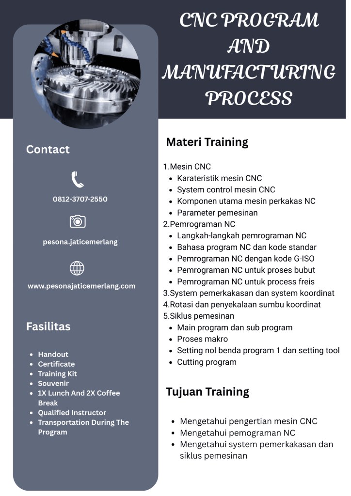 DESKRIPSI Perkembangan teknologi komputer saat ini telah mengalami kemajuan yang amat pesat.Dalam hal ini komputer telah diaplikasikan ke dalam alat-alat mesin perkakas di antaranya mesin bubut, mesin miling, mesin sekrap, mesin bor, dan lain-lain. Hasil perpaduan teknologi komputer dan teknologi mekanik inilah yang selanjutnya dinamakan CNC (Computer Numerically Controlled). Sistem pengoperasian CNC menggunakan program yang …