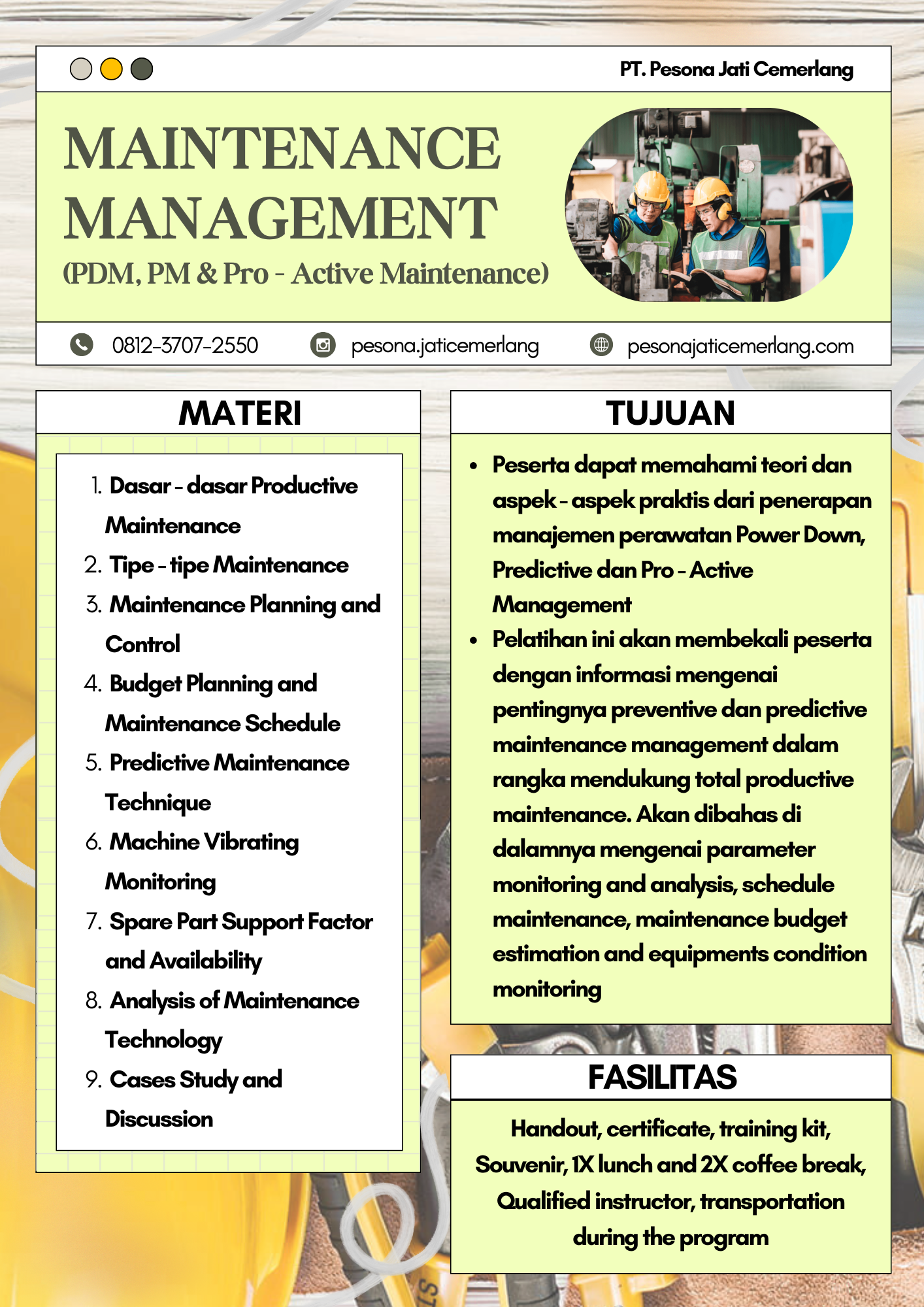 MAINTENANCE MANAGEMENT (PDM, PM, & Pro-Active Maintenance)
