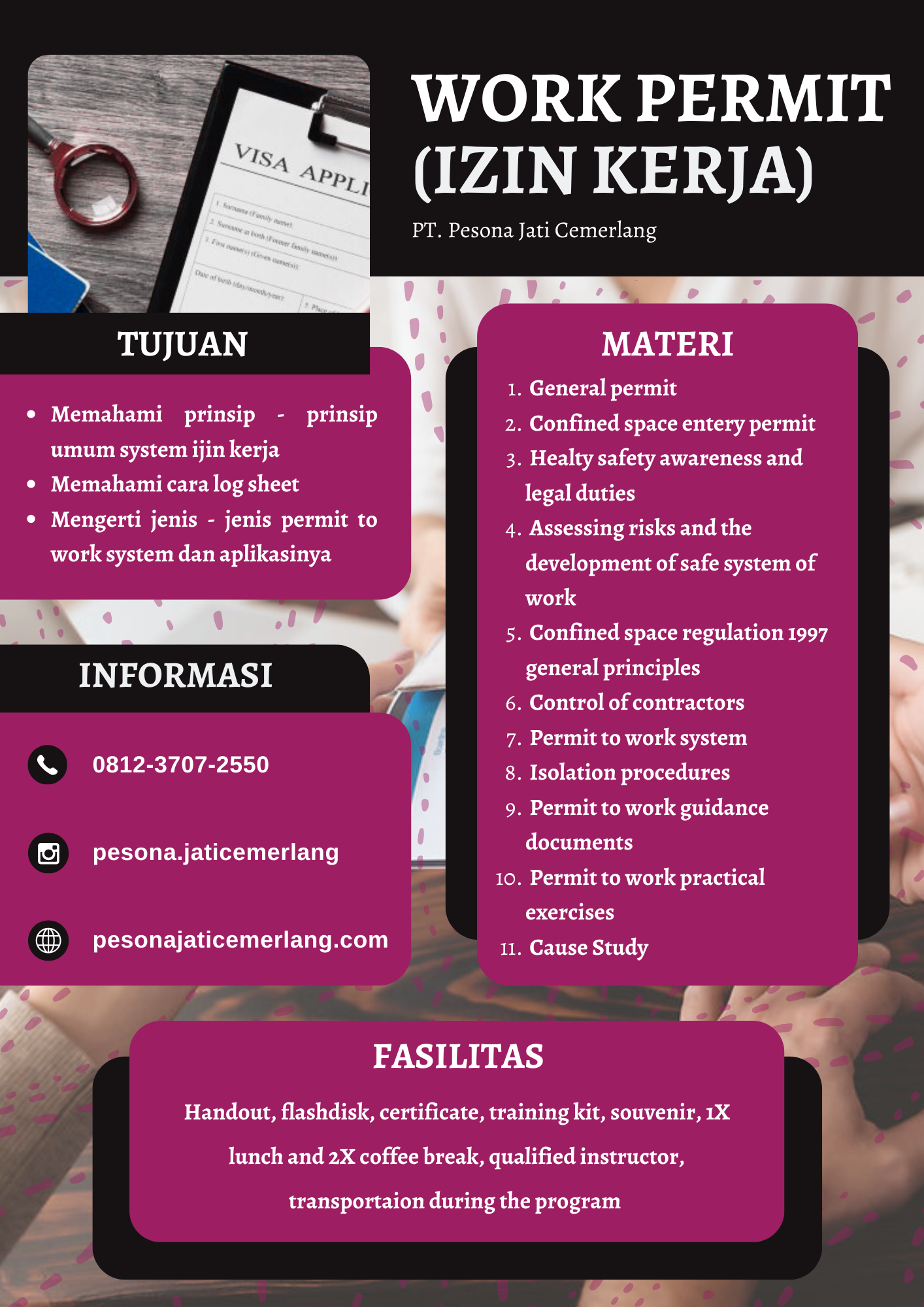 DISKRIPSI Work permit adalah sebuah system yang digunakan untuk mengontrol tipe – tipe pekerjaan tertentu yang memiliki potensi bahaya. Work permit harus …