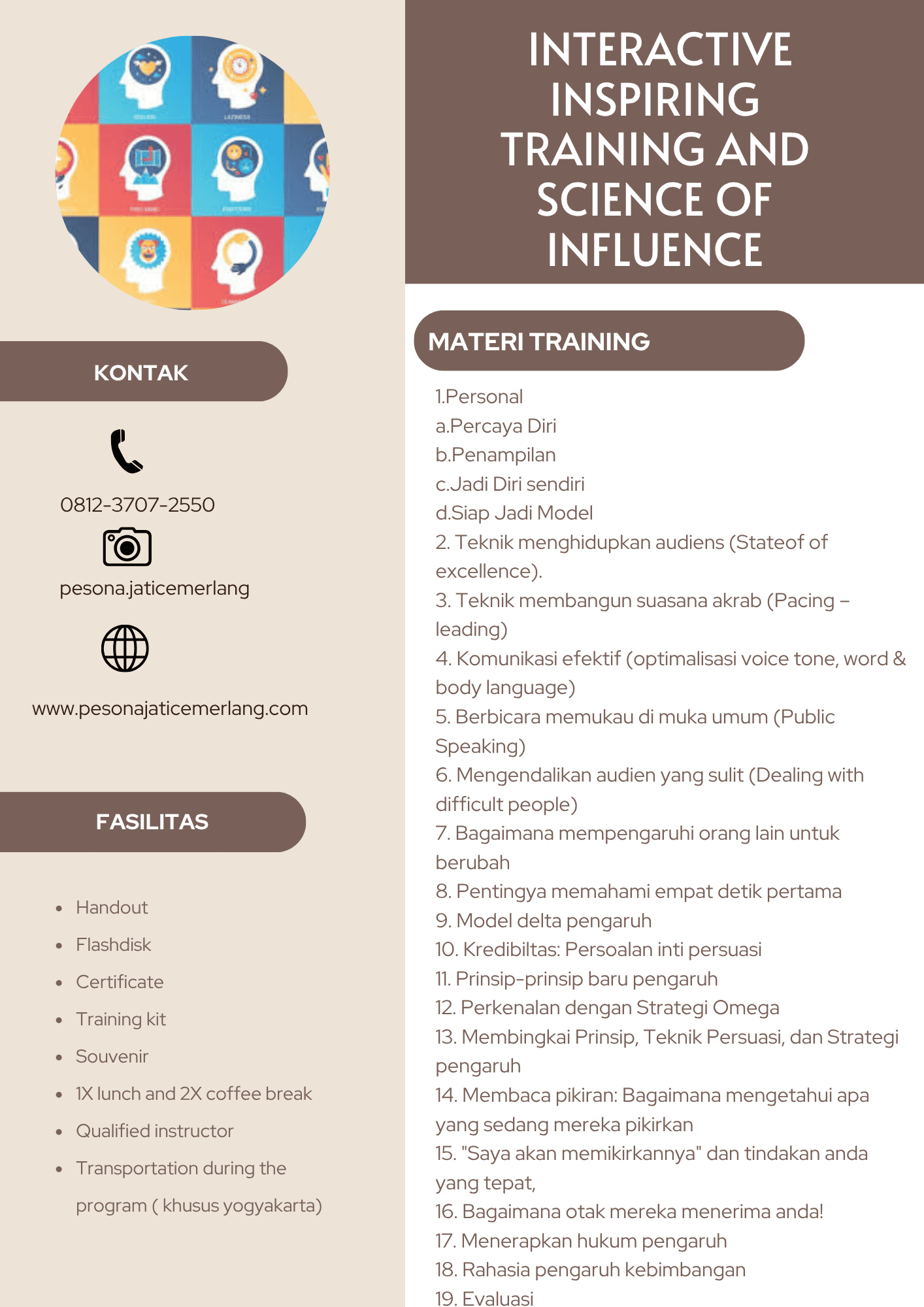 DISKRIPSI Selain mempunyai keahlian dalam bidang yang diajarkan, seorang trainer diharapkan mampu memberikan pelatihan dengan menarik dan kreatif. Ia juga mesti paham …