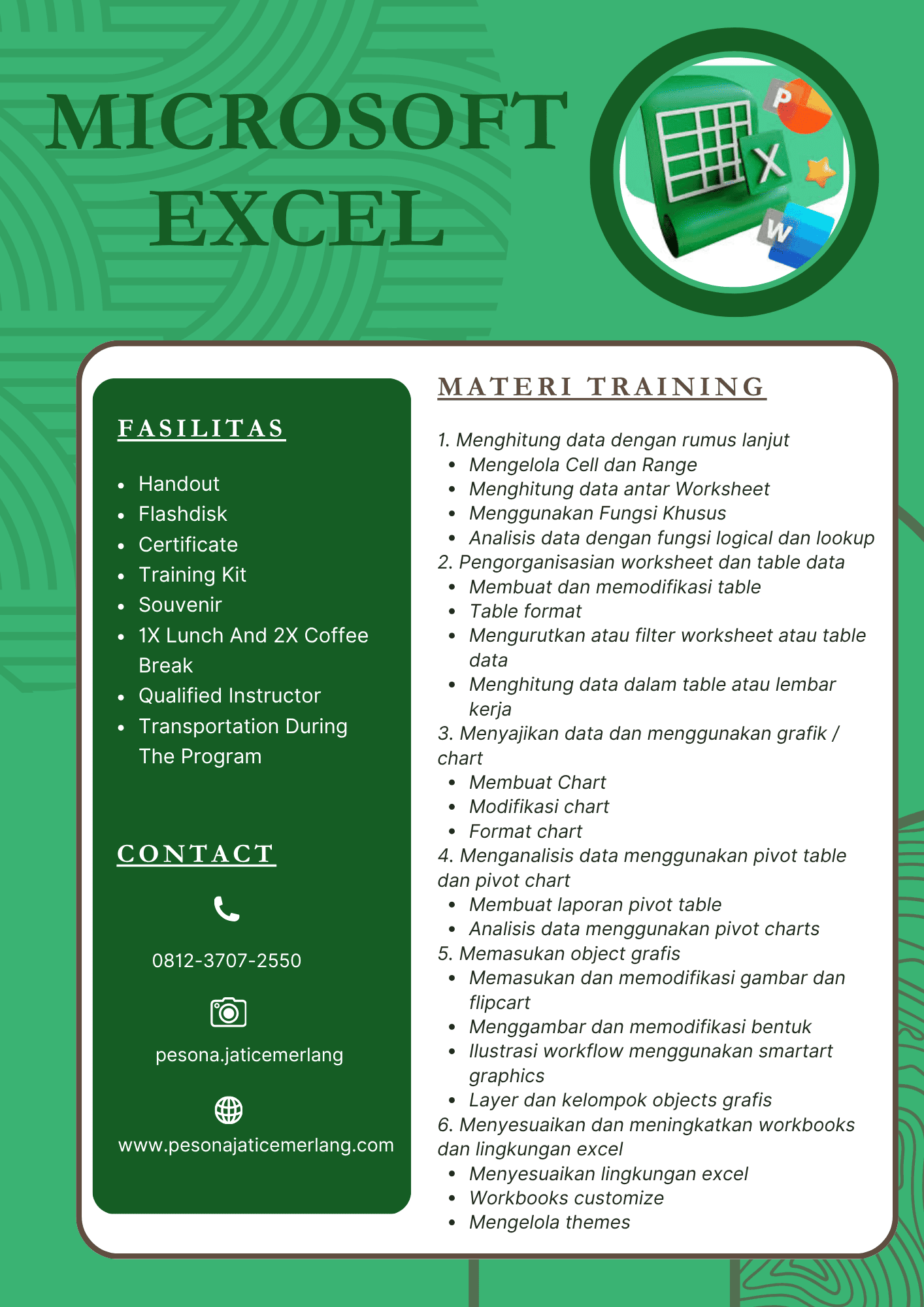 DISKRIPSI Pemanfaatan Microsoft Excel dewasa ini telah sangat lazim digunakan dalam kehidupan sehari-hari, khususnya dalam berbagai aktivitas bisnis, pendidikan dan lain-lain. Bagi …