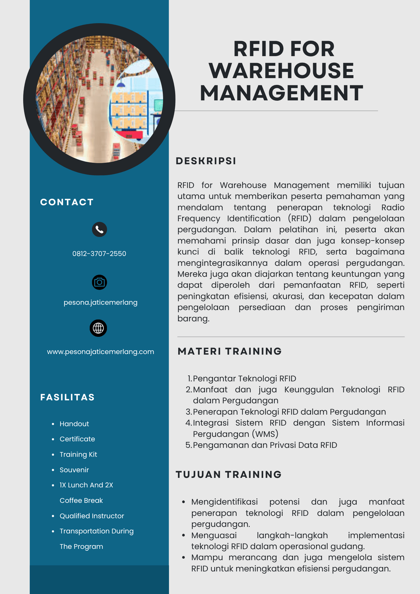DESKRIPSI RFID for Warehouse Management memiliki tujuan utama untuk memberikan peserta pemahaman yang mendalam tentang penerapan teknologi Radio Frequency Identification (RFID) dalam …