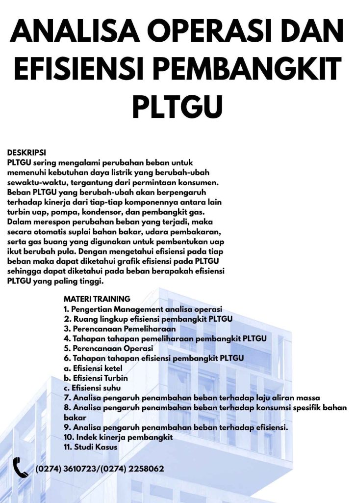 TRAINING Leave a Comment / By admpesonajc / 21 April 2026 ANALISA OPERASI DAN EFISIENSI PEMBANGKIT PLTGU
